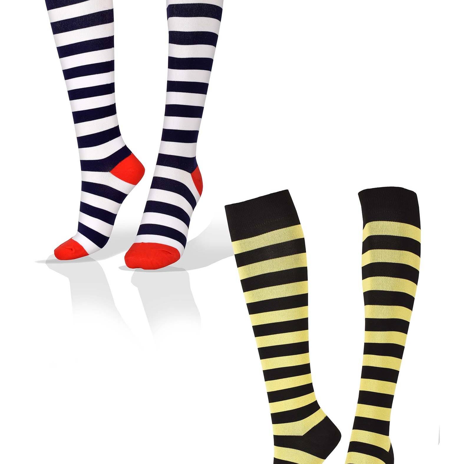 2 Pares de Medias de Compresion Rayas Amarillo y Negro y Rayas Rojo, Azul y Blanco Aves del Plata™