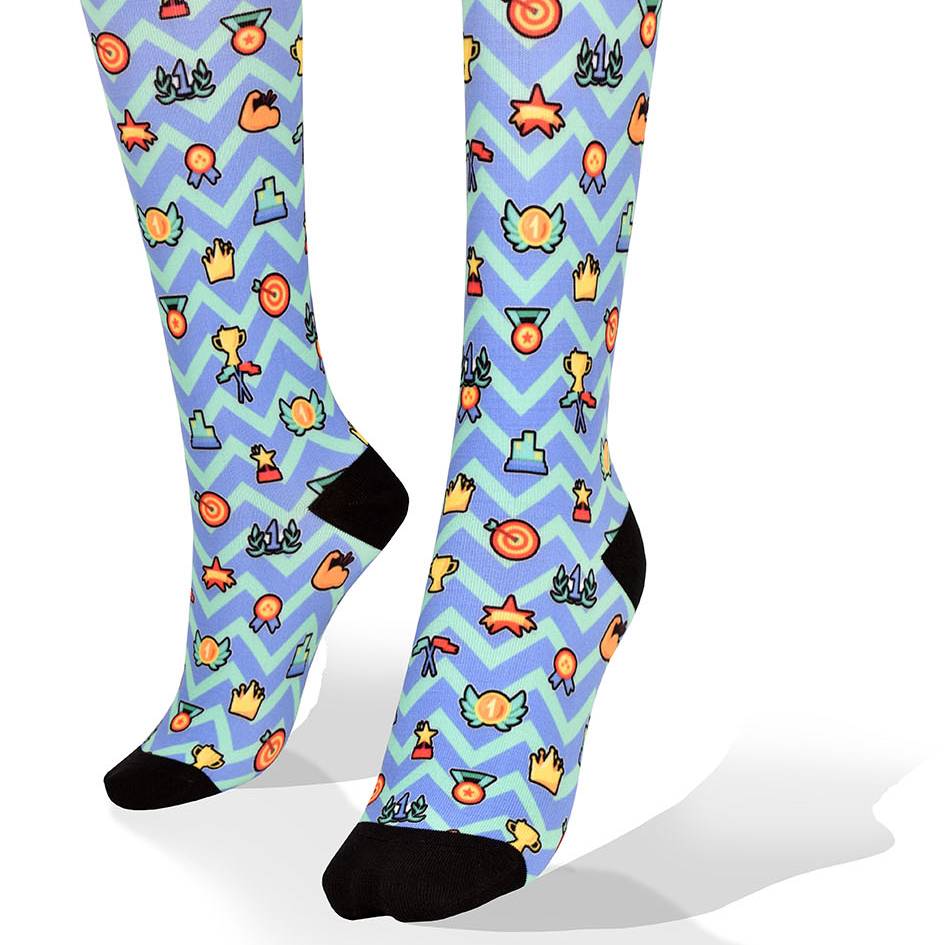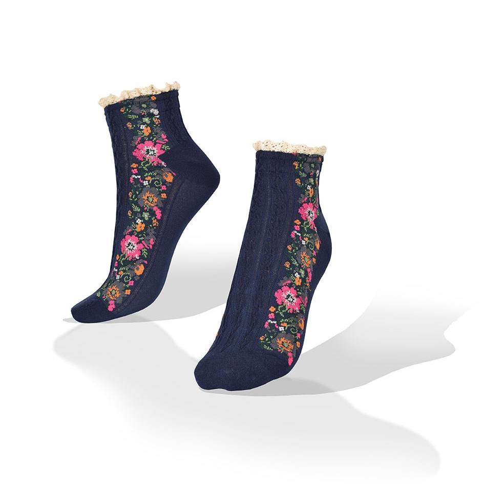 Medias con Flores y Volados en Fondo Azul Aves del Plata™