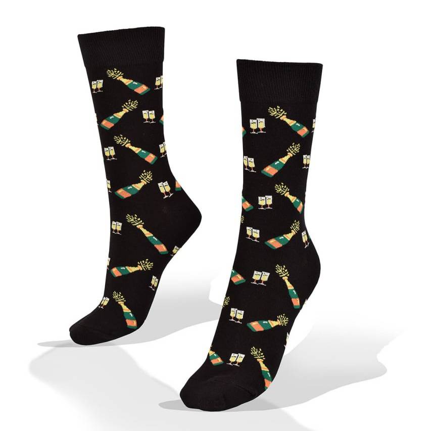 Medias Aves del Plata™ Botellas y Copas de Champagne en Fondo Negro.