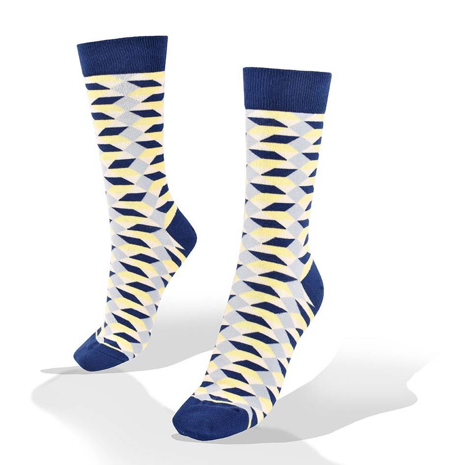 Medias Rectangulos Geometricos en Azul, Amarillo y Gris Aves del Plata™