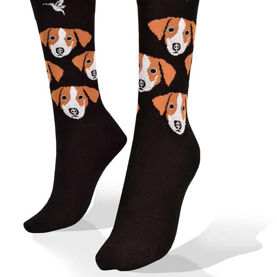 Medias con Jack Russell en fondo negro
