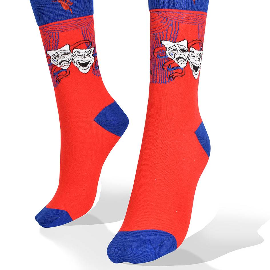 Medias Teatro y Mascaras de Carnaval en fondo rojo
