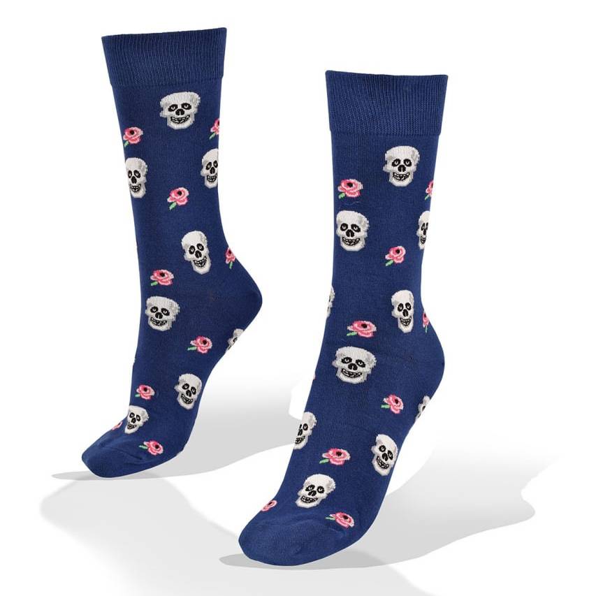 Medias Aves del Plata™ Calaveras con Rosas en Fondo Azul.