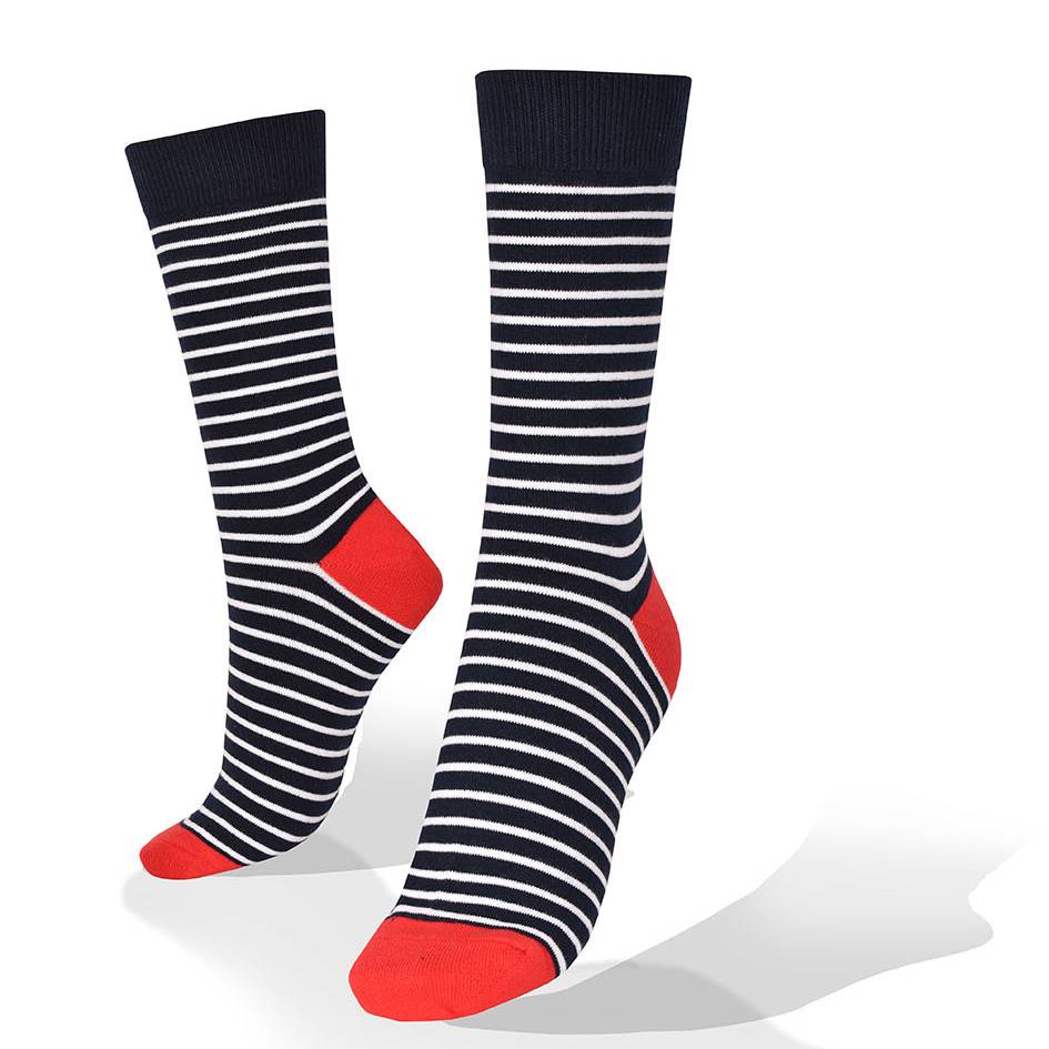 Medias con Rayas Finas en Negro y Blanco,Talon Rojo