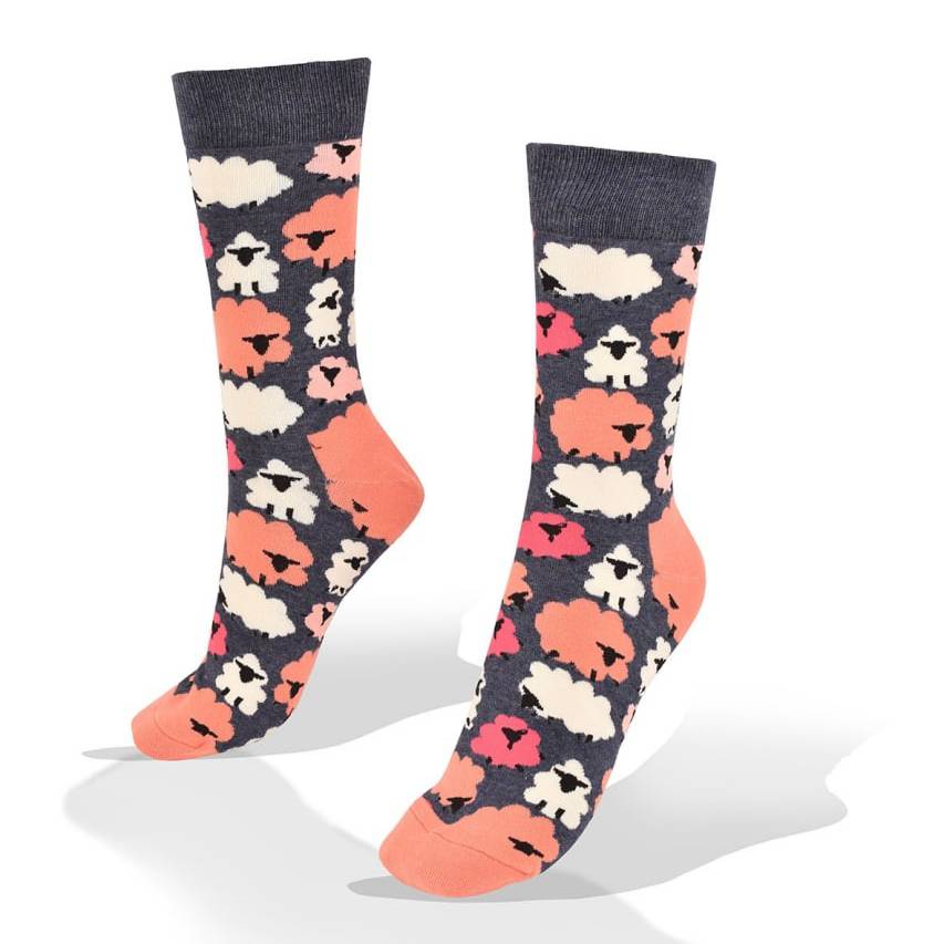Medias Aves del Plata™ Ovejas en Fondo Gris con Talón Salmon.