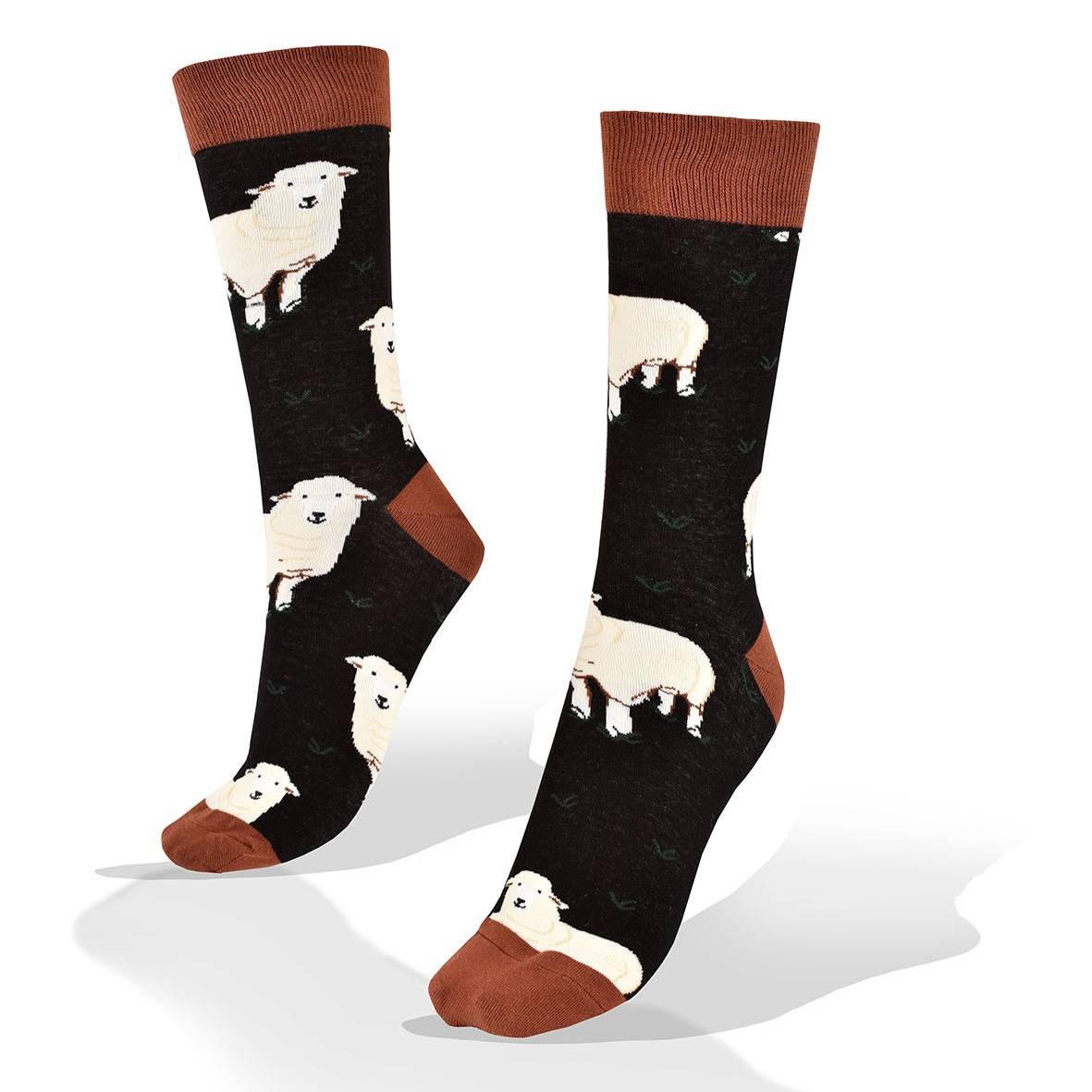 Medias Aves del Plata™ Ovejas Fondo Negro Borde Marron