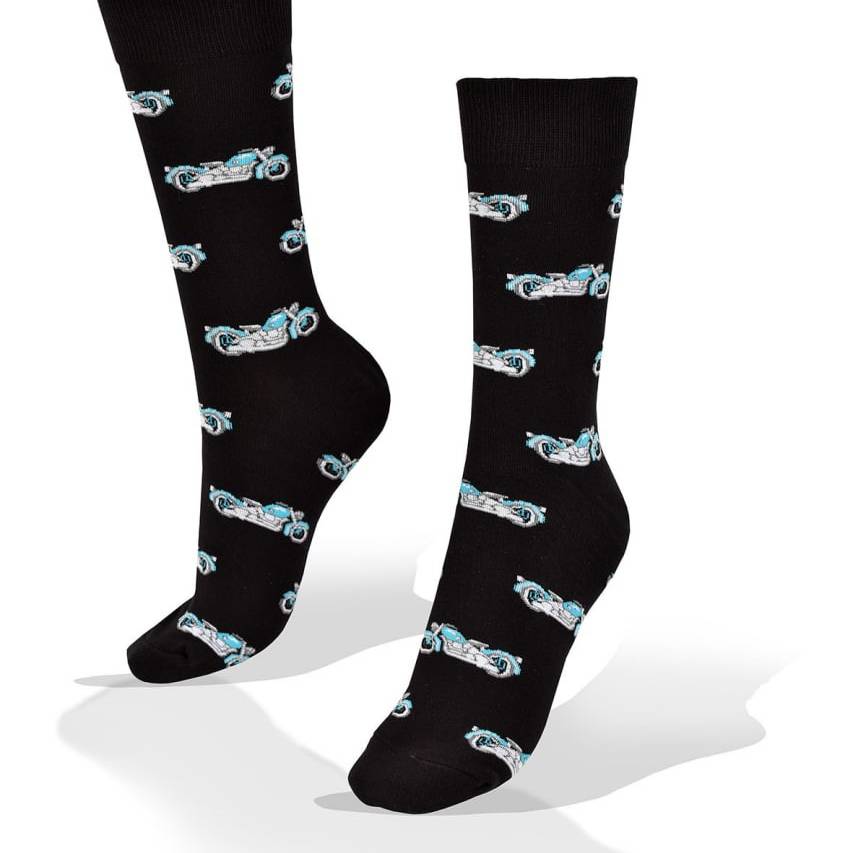 Medias Aves del Plata™Motos Estilo Harley Celestes, Fondo Negro.