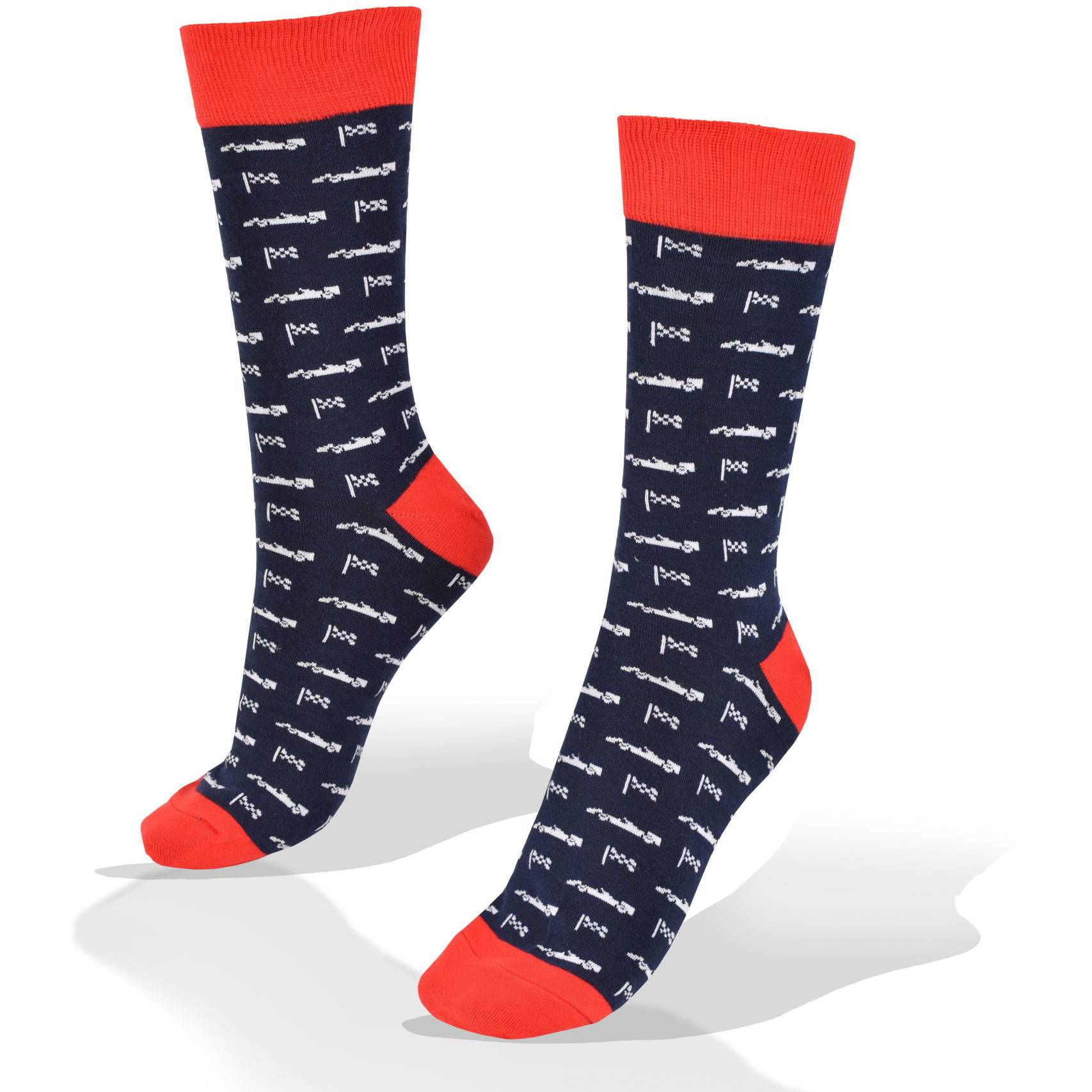 Medias Aves del Plata ™Autos de Carrera Fondo Azul, Talón Rojo.
