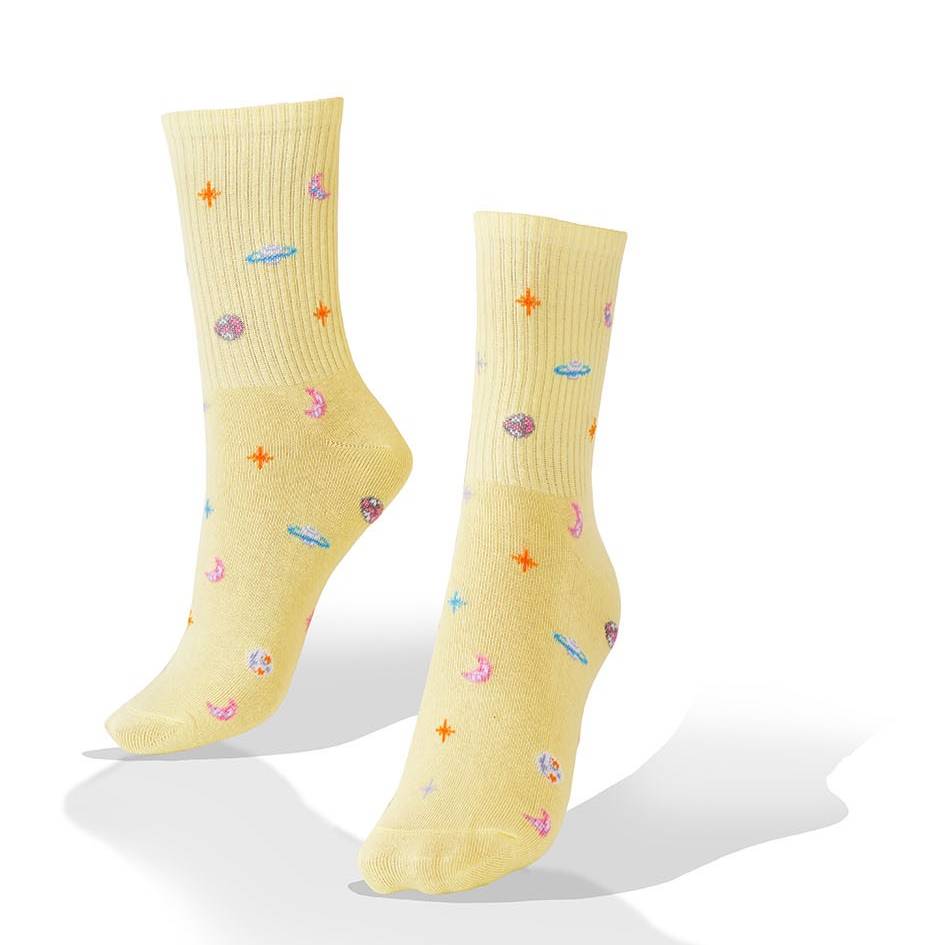 Medias con Planetas y Galaxias Fondo Amarillo Aves del Plata™