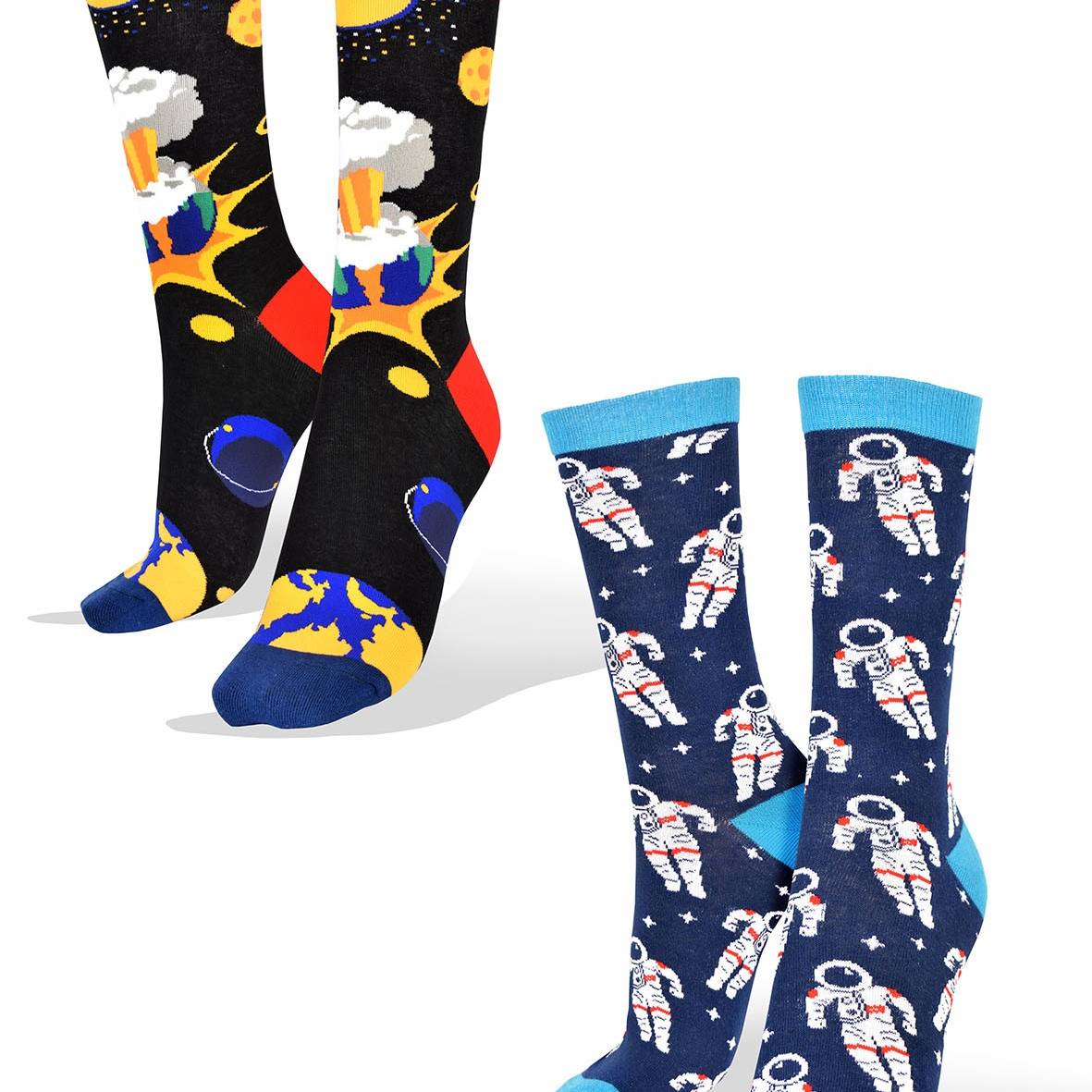 2 pares de Medias del Espacio con el Sol y Astronautas en Orbita Lunar Aves del Plata™