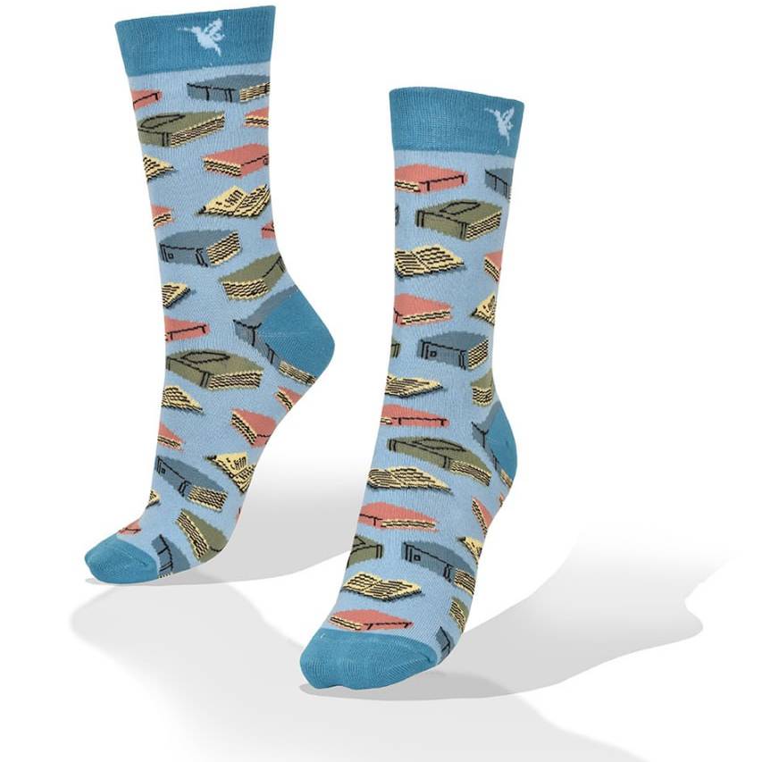 Medias con Libros en fondo azul, diseño exclusivo Aves del Plata