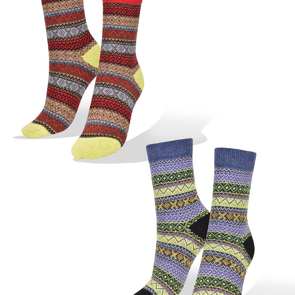 2 Pares de Medias Jacquard en Tonos de Azul y de Rojo Aves del Plata™