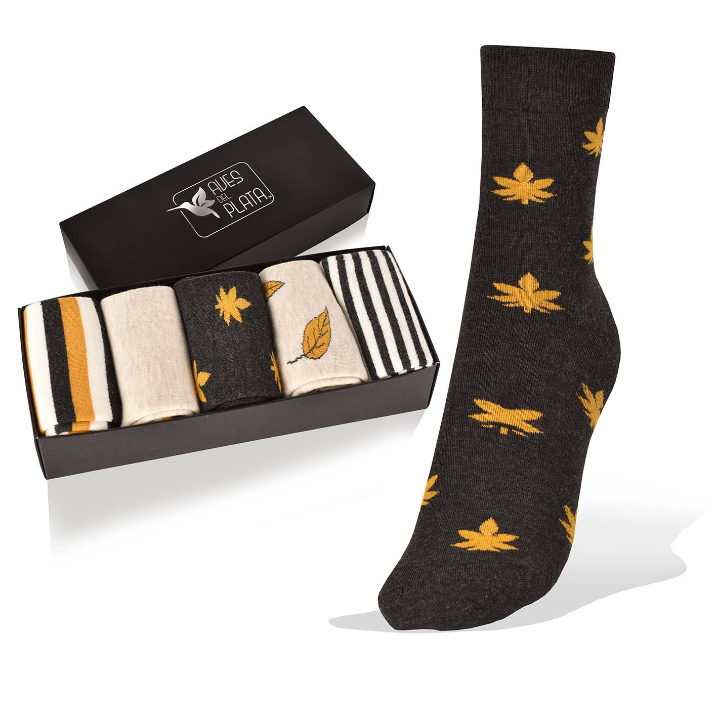 5 Pares de Medias en Caja con Tonos Otoñales