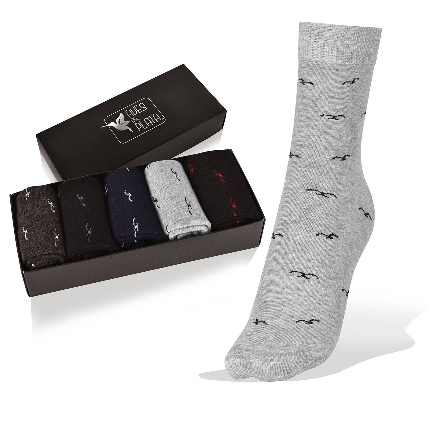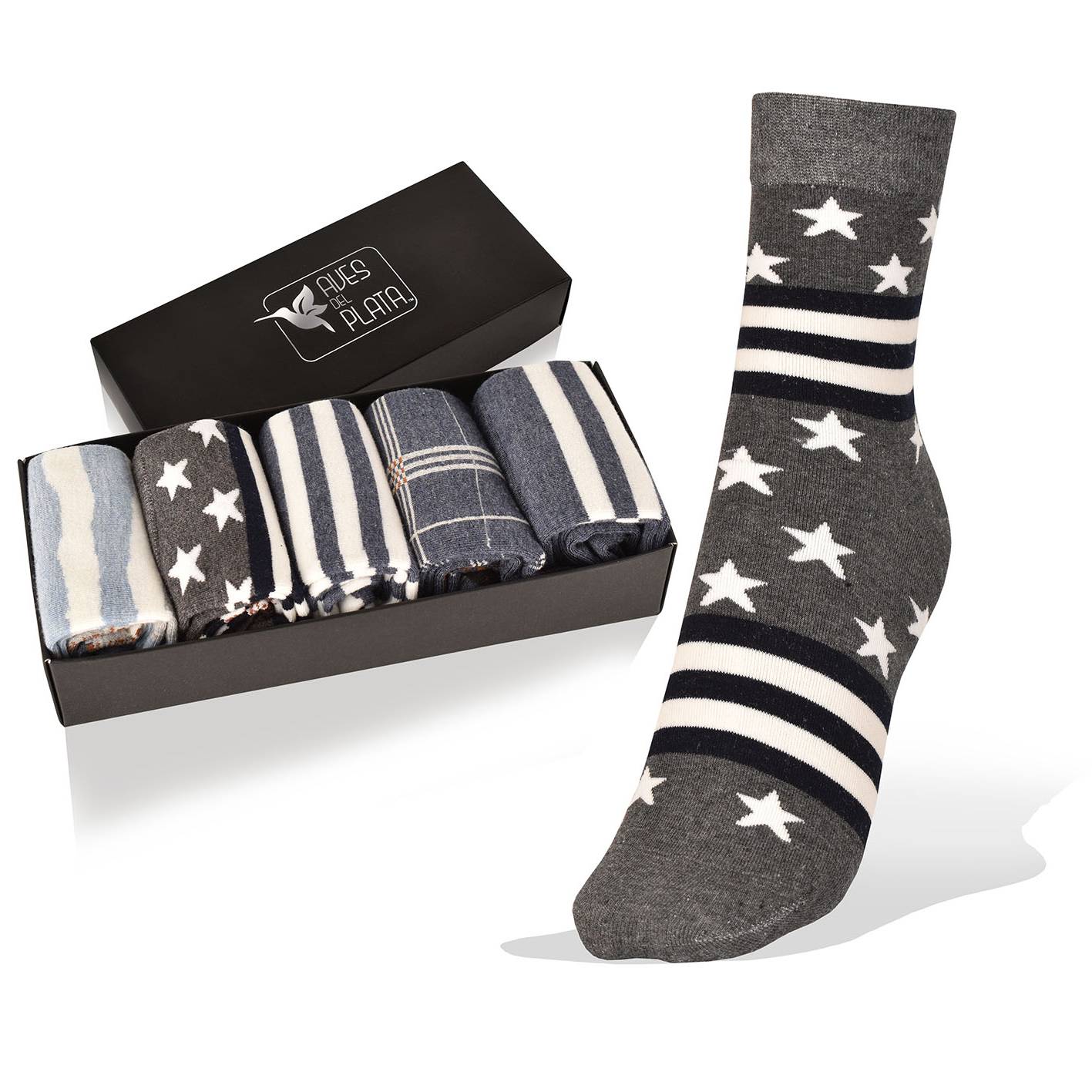 5 Pares de Medias,en Negro, Azul, Gris en Caja