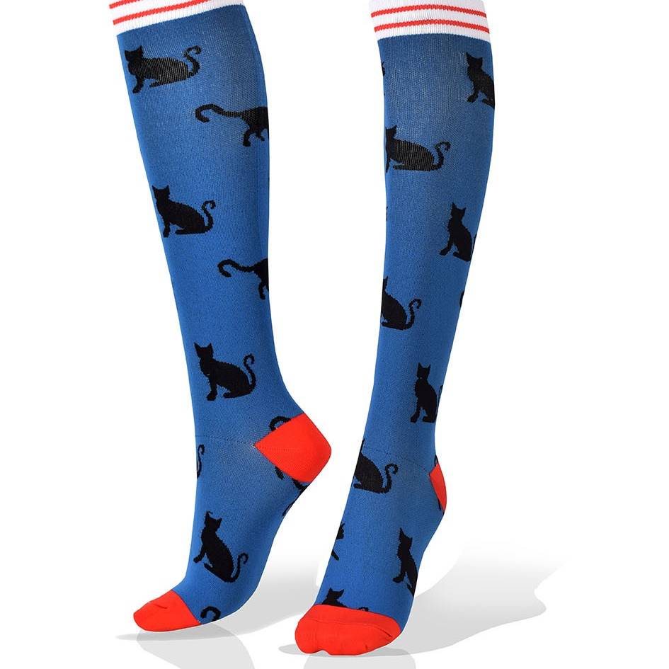Medias de Compresion Gato Negro en Fondo Azul Aves del Plata™