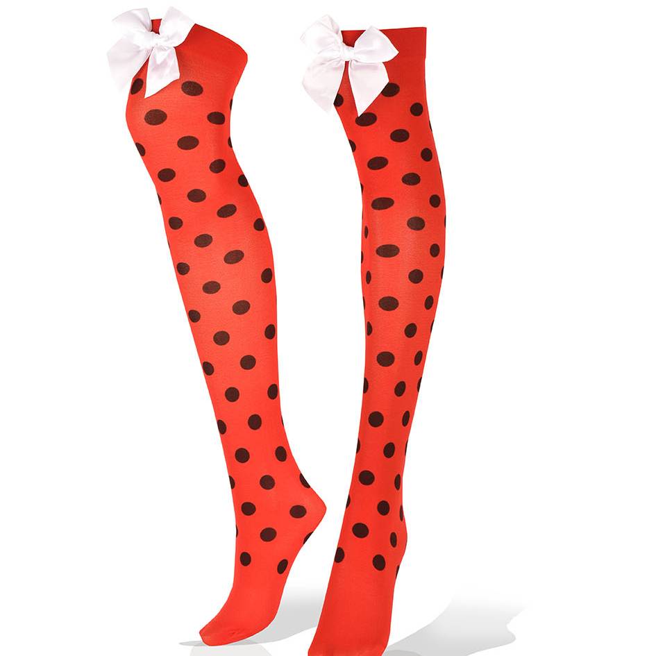 Medias Largas Altas Rojas con Pintitas Negras y Moña