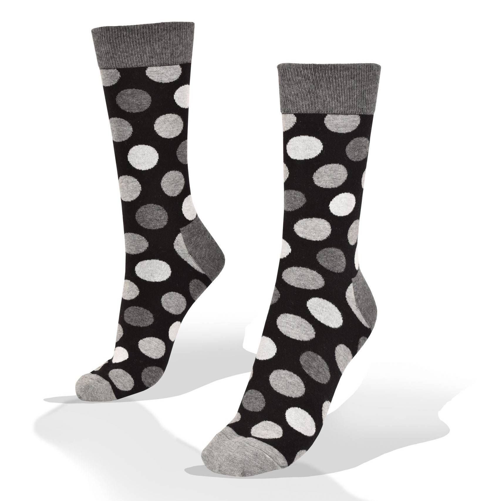 Medias Aves del Plata™ Circulos Grises en Fondo Negro y Elástico Gris.