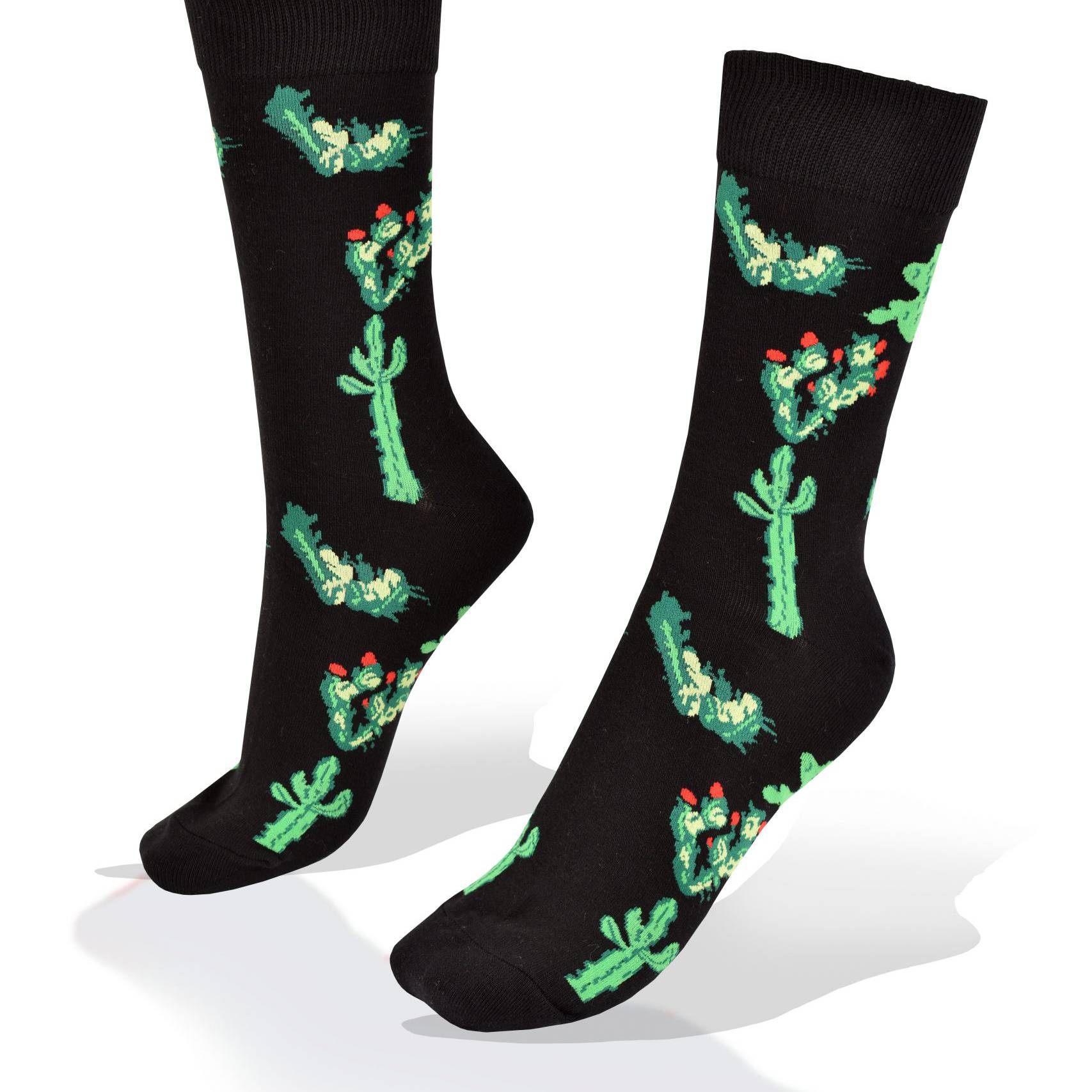 Medias Aves del Plata™ Cactus y Plantas Verdes, Fondo Negro.