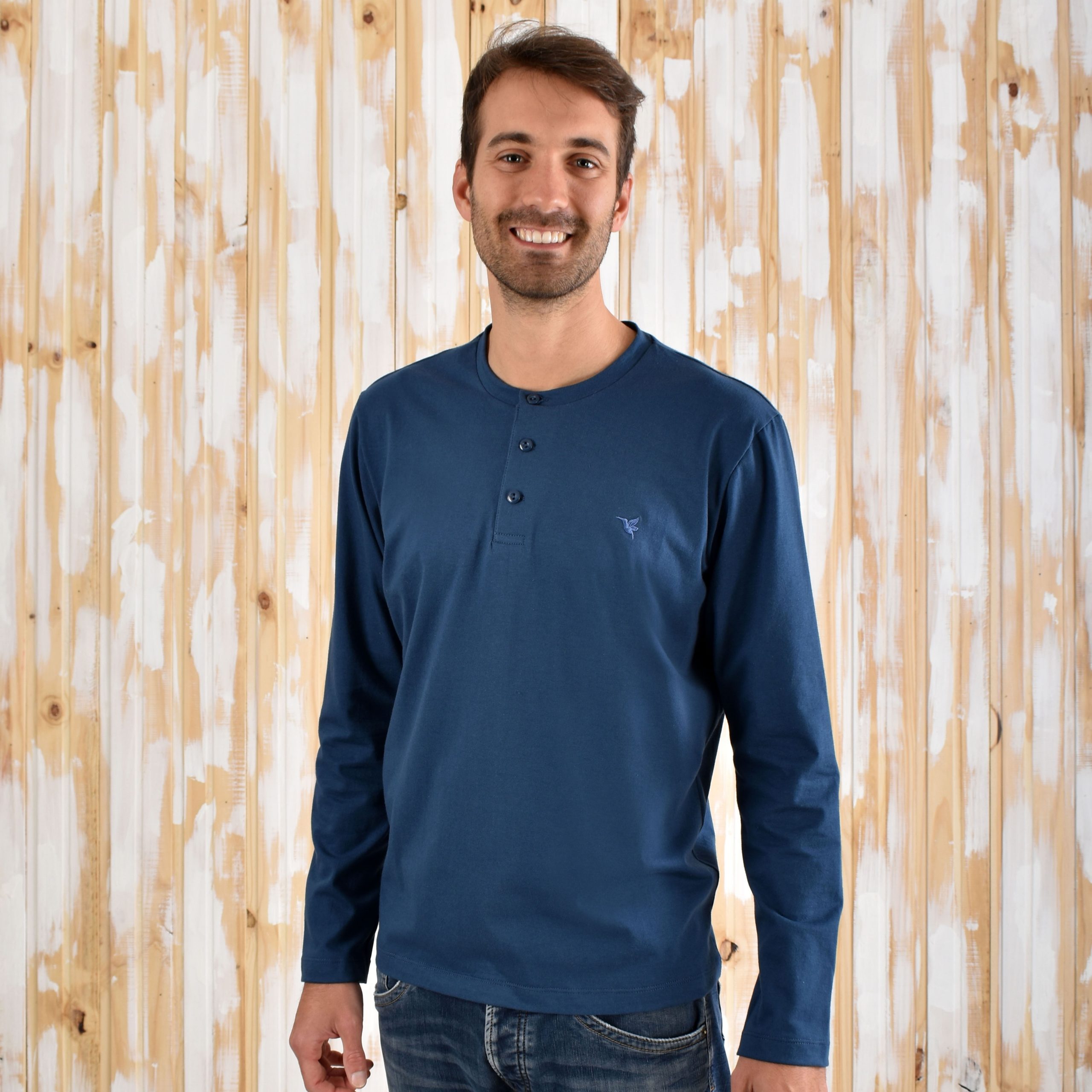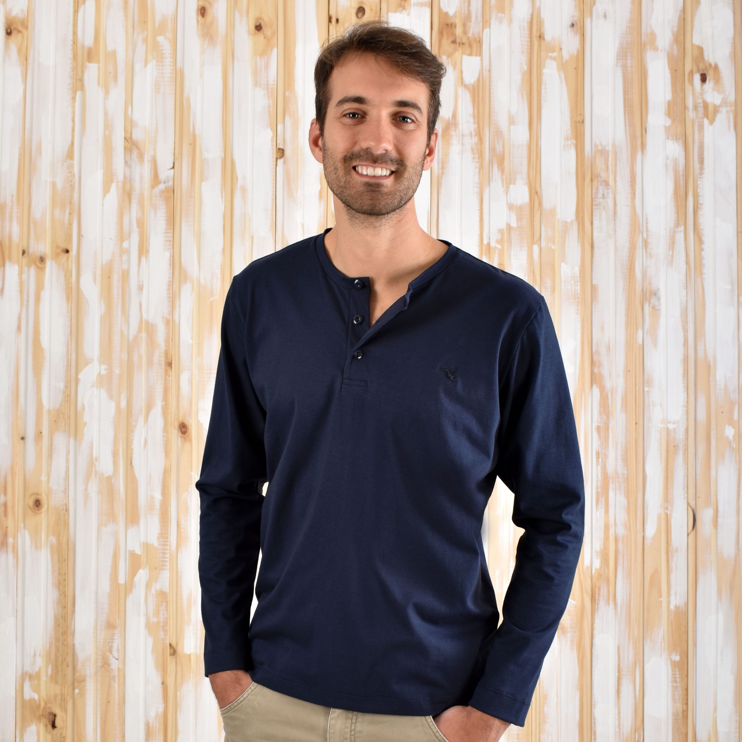 Remera Azul Marino Henley Manga Larga Aves del Plata™
