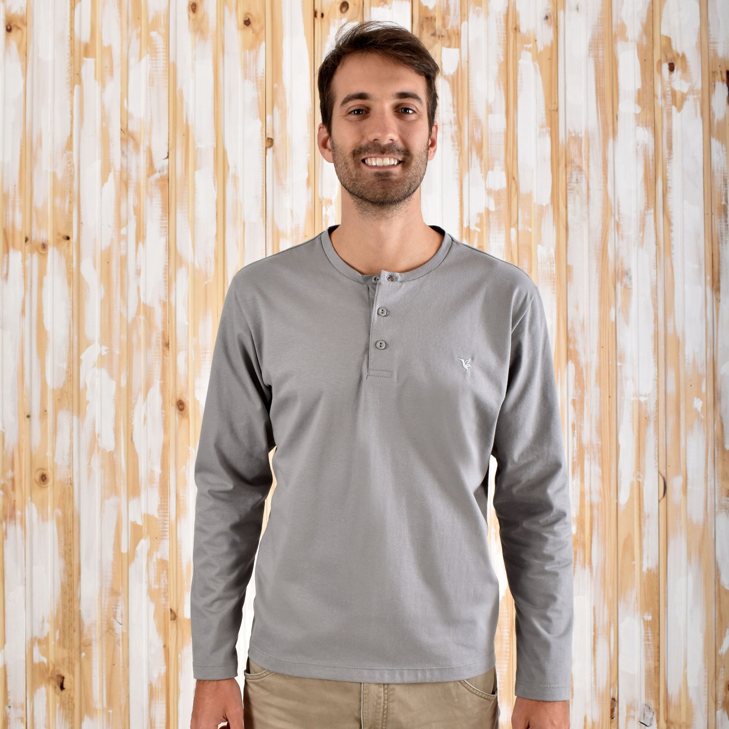 Remera Henley Manga Larga Gris Jaspeado Aves del Plata™