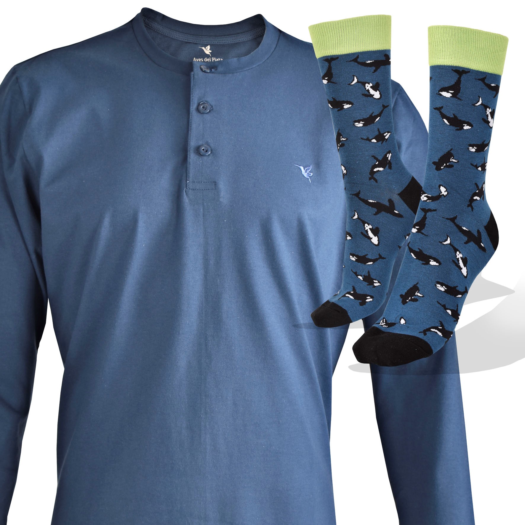 Remera Henley Manga Larga Azul con Medias con Orcas Aves del Plata™