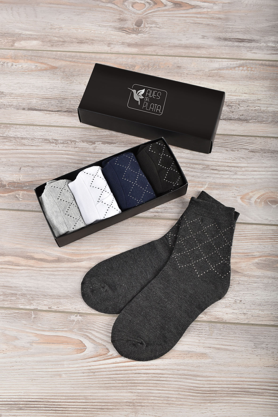 Medias Aves del Plata™ Caja de 5 Pares de Medias en color Negro, Azul, Gris, Gris oscuro, Rombos finos