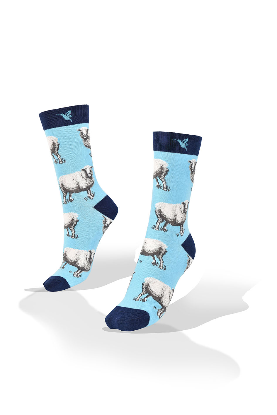 Medias Aves del Plata™ Ovejas Fondo Celeste, Talón y Tobillo Azul.