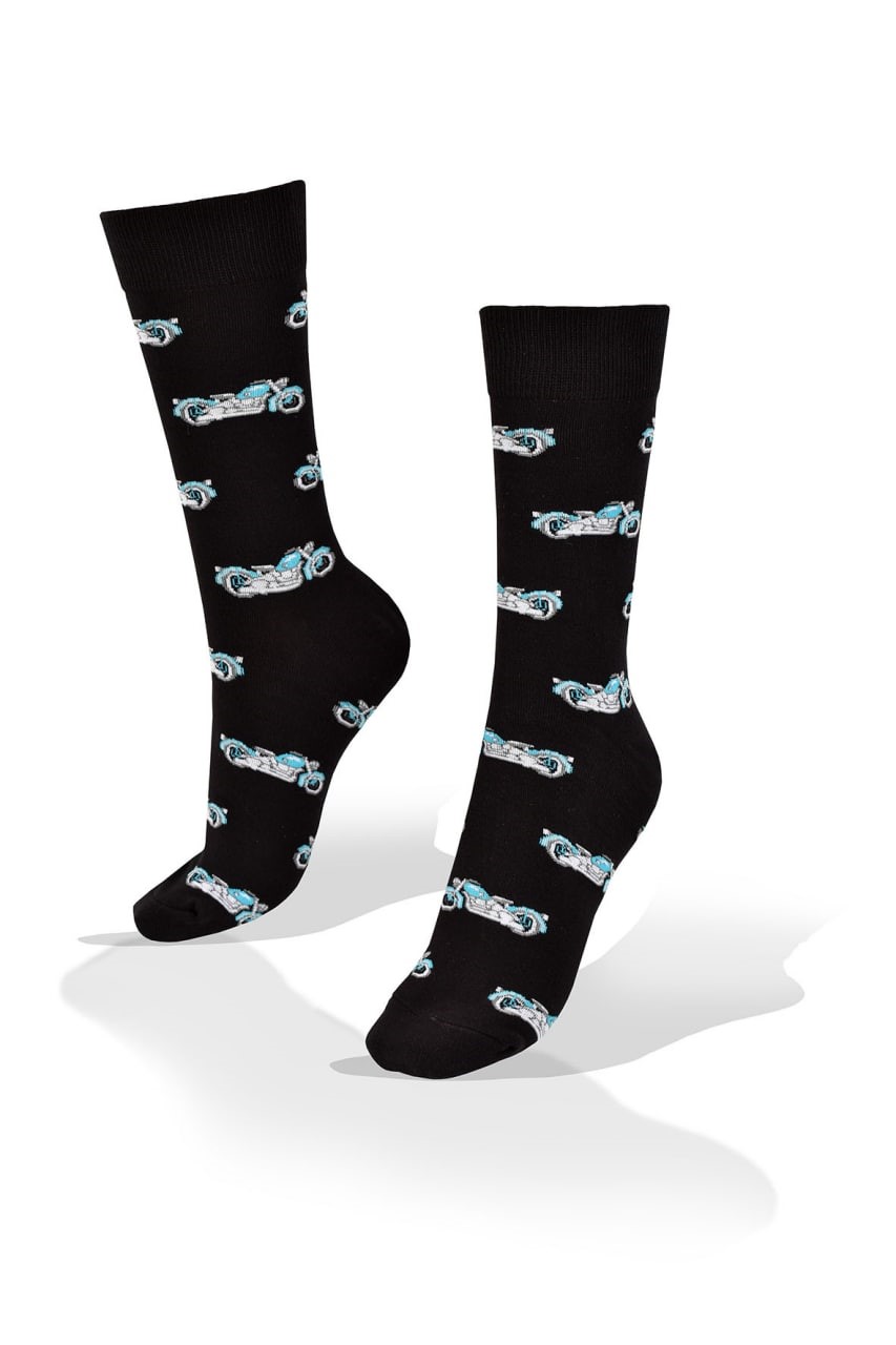 Medias Aves del Plata™Motos Estilo Harley Celestes, Fondo Negro.