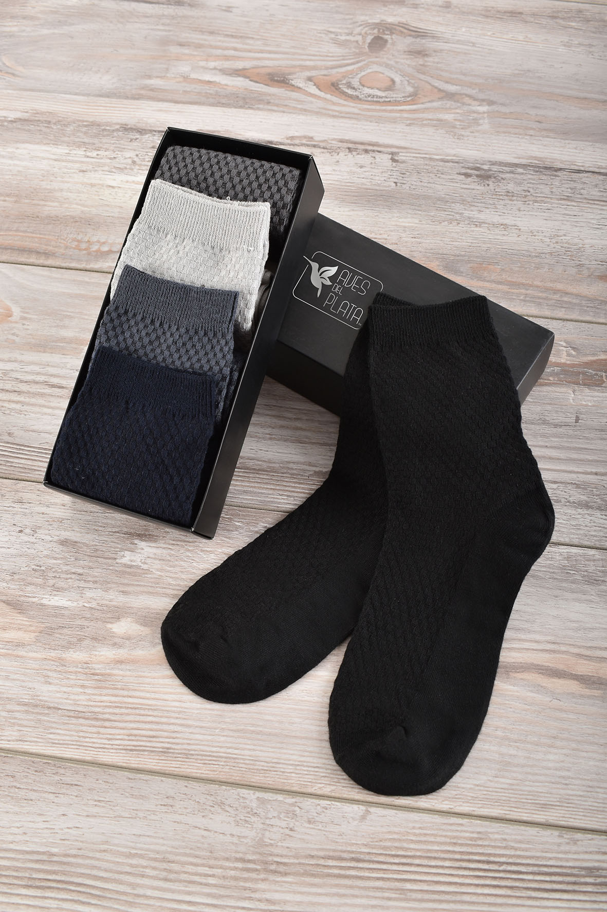 Medias Aves del Plata™ Caja 5 Pares: Gris, Gris Oscuro, Blanco, Negro, Azul, Encaje de Costado.