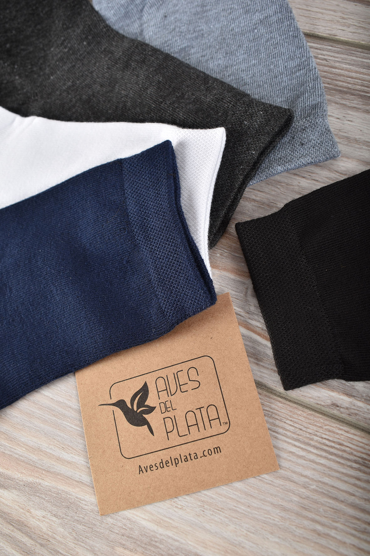 Medias Aves del Plata™ Caja de 5 Pares de Medias lisas en Blanco, Negro, Gris, Gris Oscuro y Azul.