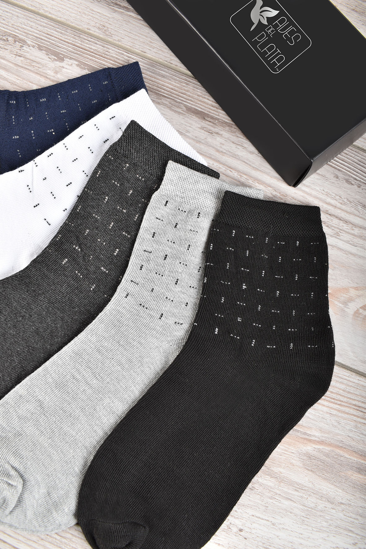 Medias Aves del Plata™ Caja de 5 Pares de Medias con Rombos Puntos en Gris, Blanco, Azul y Negro Gris.