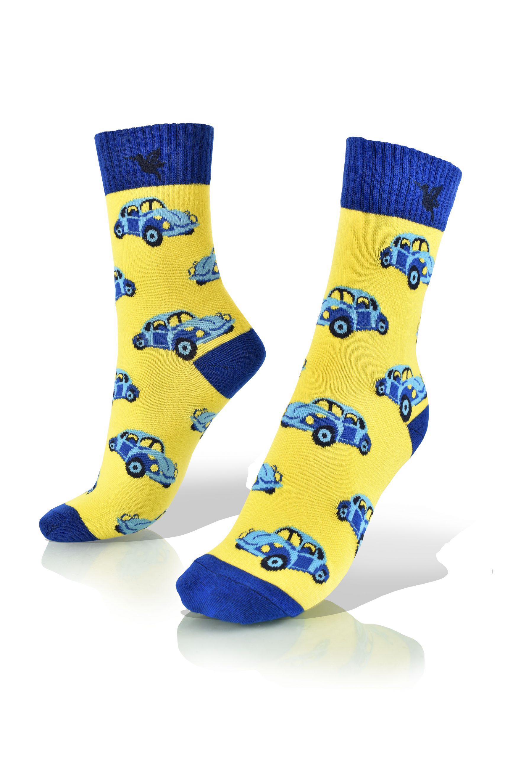 Medias Aves del Plata™ Autos estilo Beetle Celeste en Fondo Amarillo