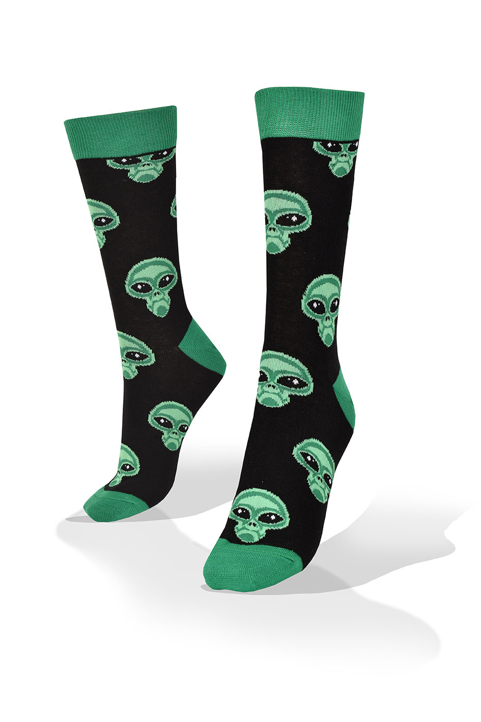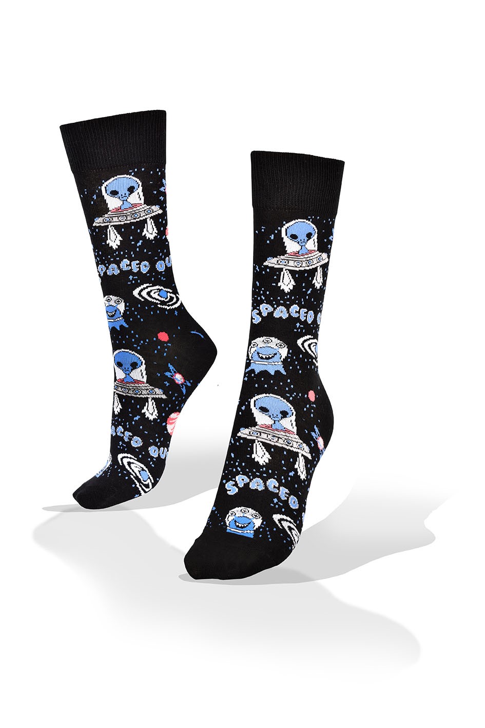 Medias Aves del Plata™ Marciano con Platillo Volador Ovni UFO en Fondo Azul y Negro, Elástico Verde.
