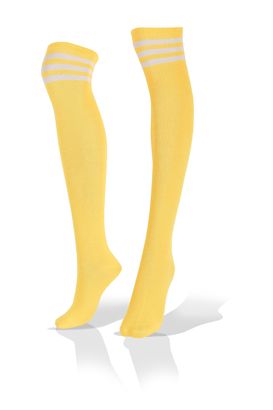 Medias Altas Largas de Dama en Amarillo con 3 Rayas