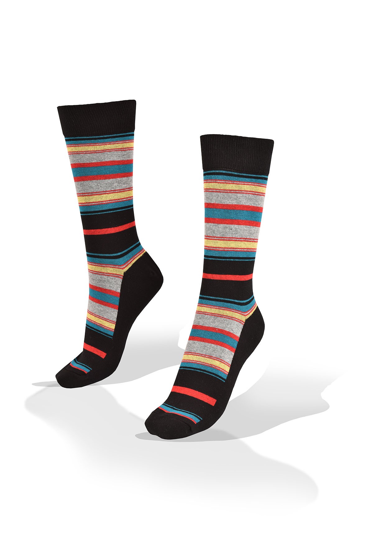 Medias Aves del Plata™ Rayas Multicolores Fondo Negro