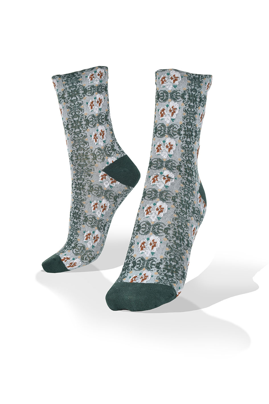 Medias Aves del Plata™ Panceta y Huevo Frito, Desayuno Americano en Fondo Celeste y Elástico Beige.