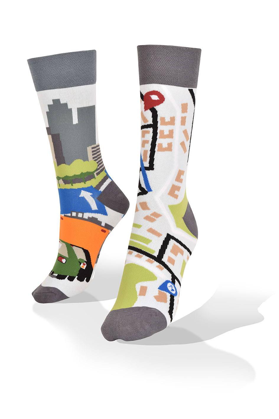 Medias Aves del Plata™ Circulos Grises en Fondo Negro y Elástico Gris.