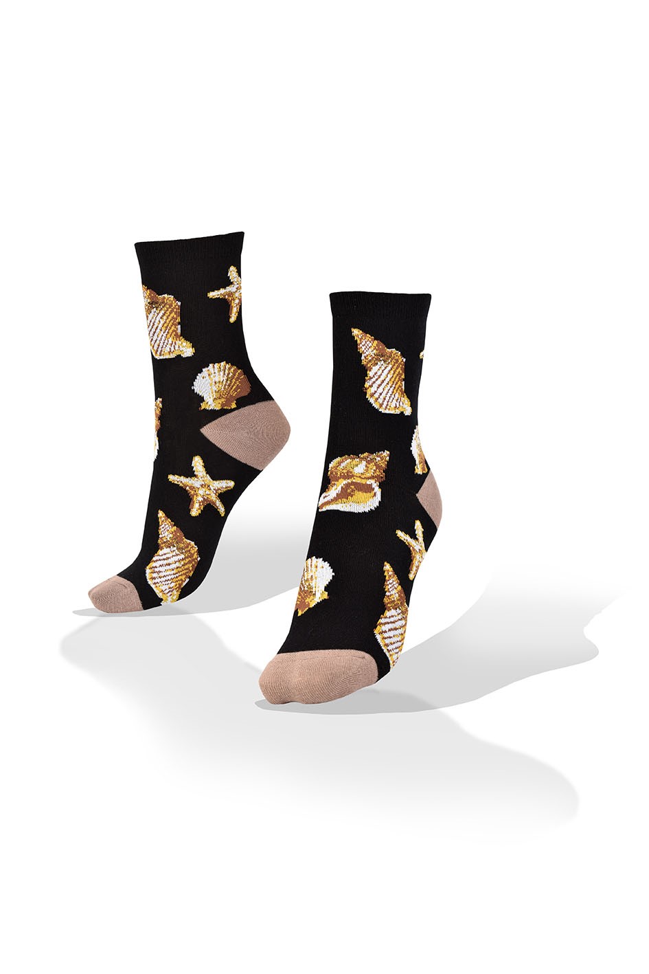 Medias Aves del Plata™ Cohete Nave Espacial y Planetas Fondo Azul y Beige, Elástico Mostaza.