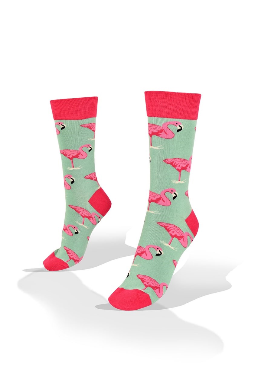 Medias Aves del Plata™ Flamencos Rosa en Fondo Celeste y Talon Rosa