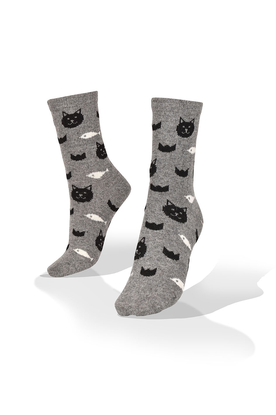 Medias Aves del Plata™ Circulos Grises en Fondo Negro y Elástico Gris.