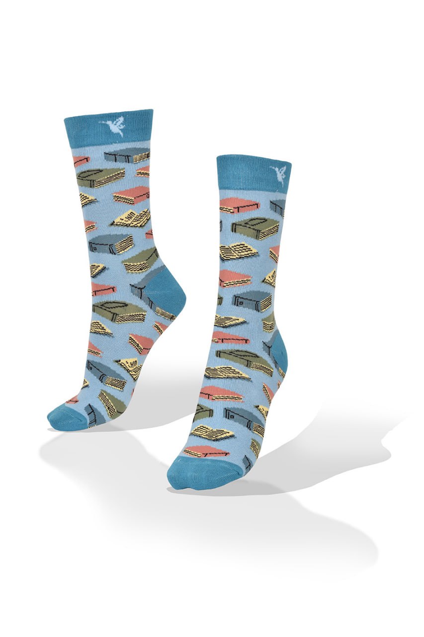 Medias con Libros en fondo azul, diseño exclusivo Aves del Plata