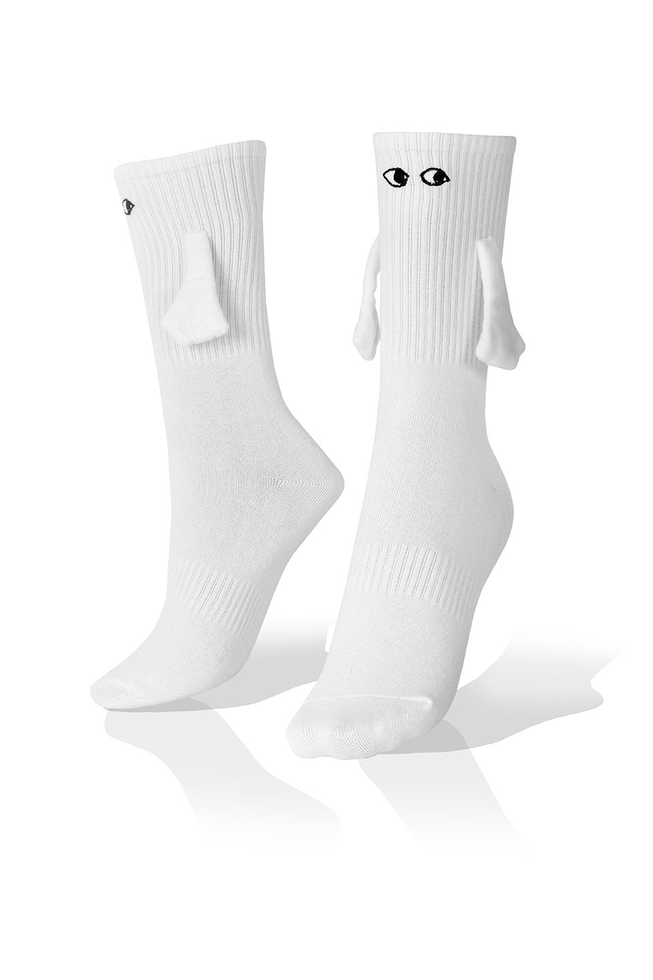 Estas medias son muy simbolicas, tienen unos imanes y pueden ser usadas juntas si estas parado o desatando el iman para caminar
