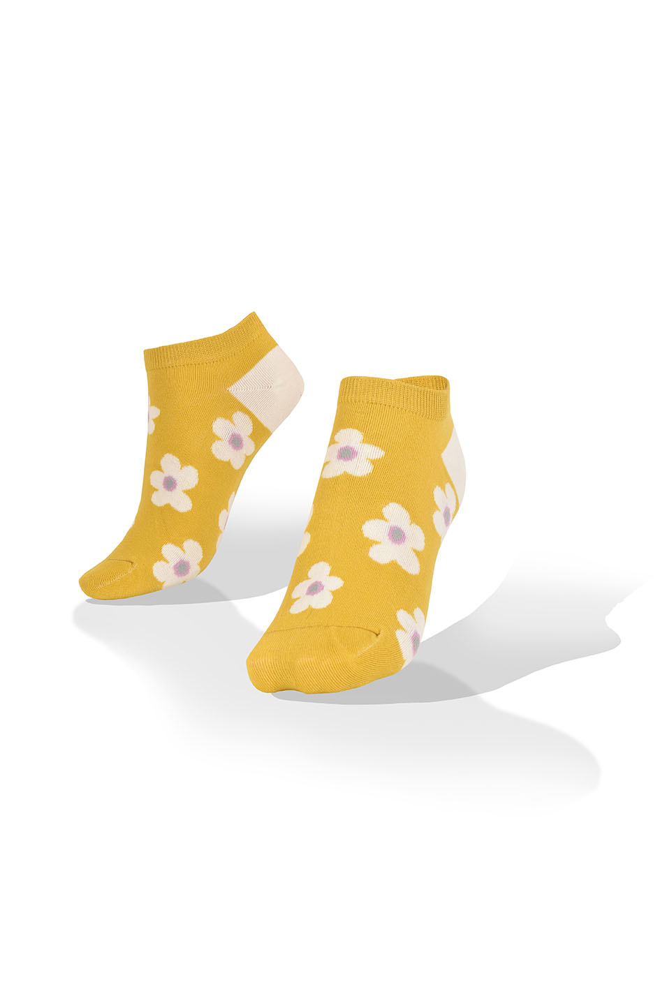 Soquetes con Margaritas Artísticas en Fondo Mostaza