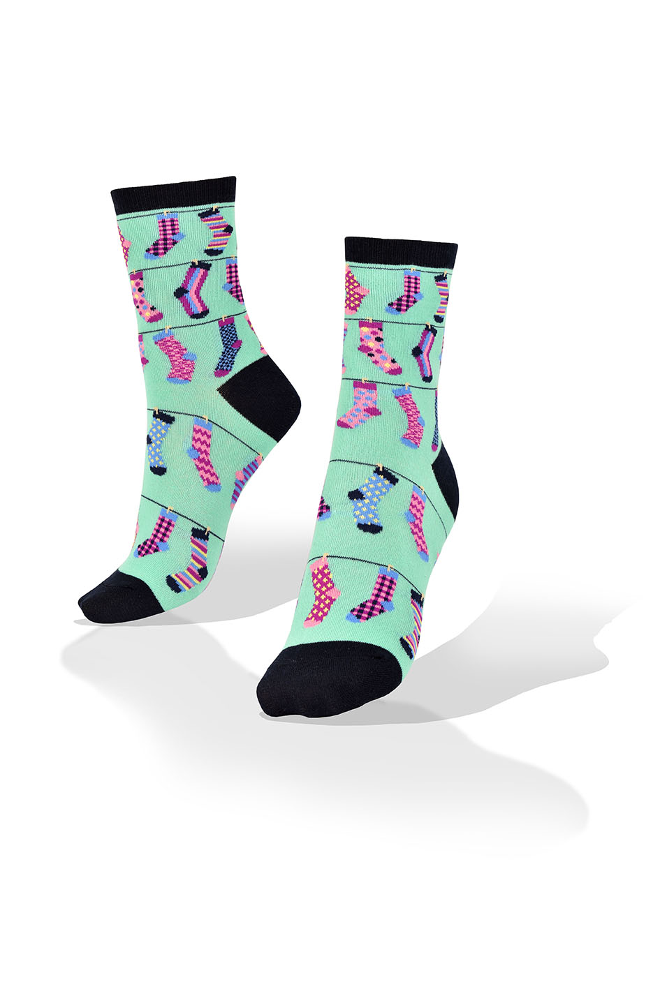 Medias Aves del Plata™ Cerdos en Fondo Celeste Turquesa, Talón y Tobillo Rosado.