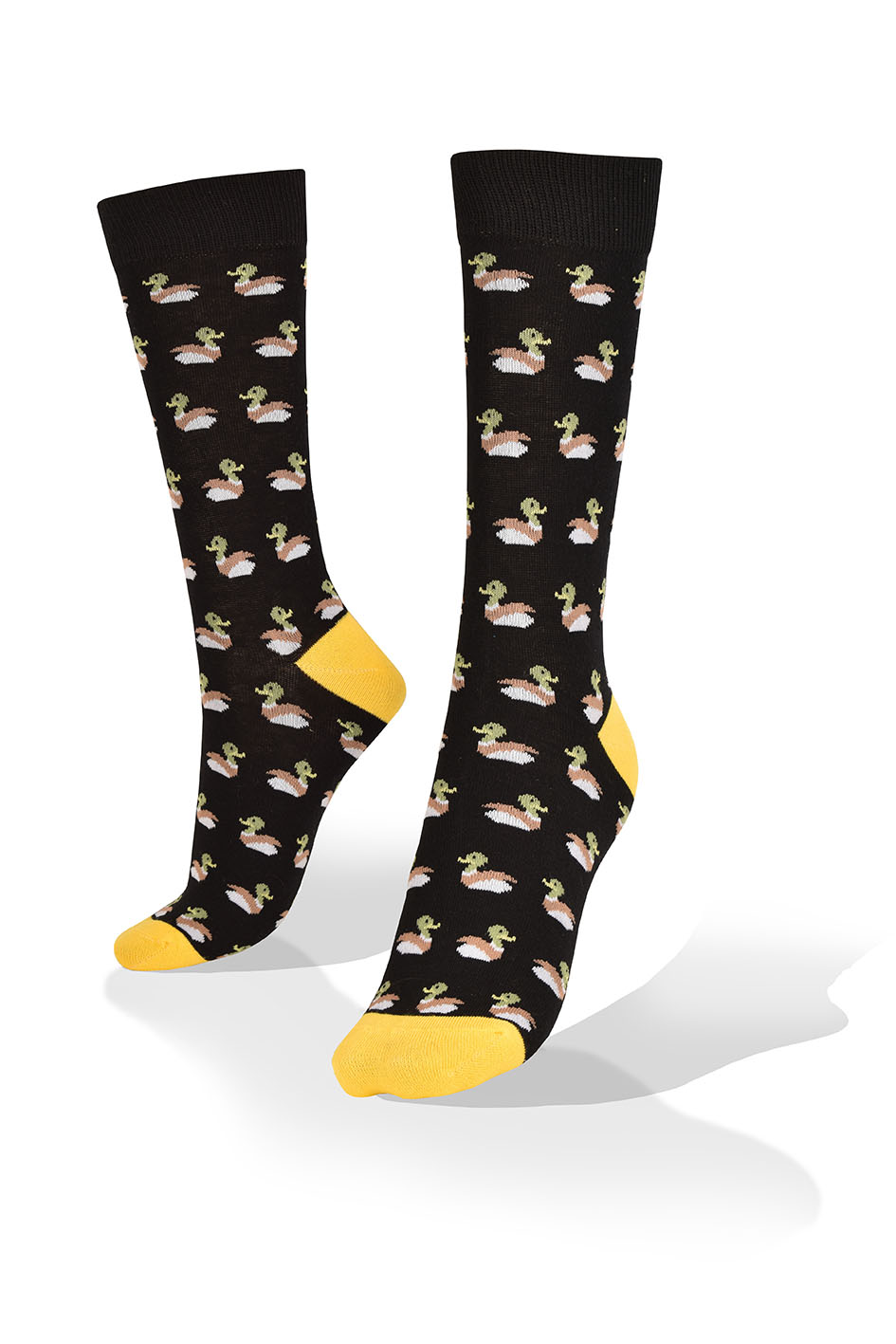 Medias Aves del Plata™ Vacas Fondo Amarillo, Talón y Elástico Azul.