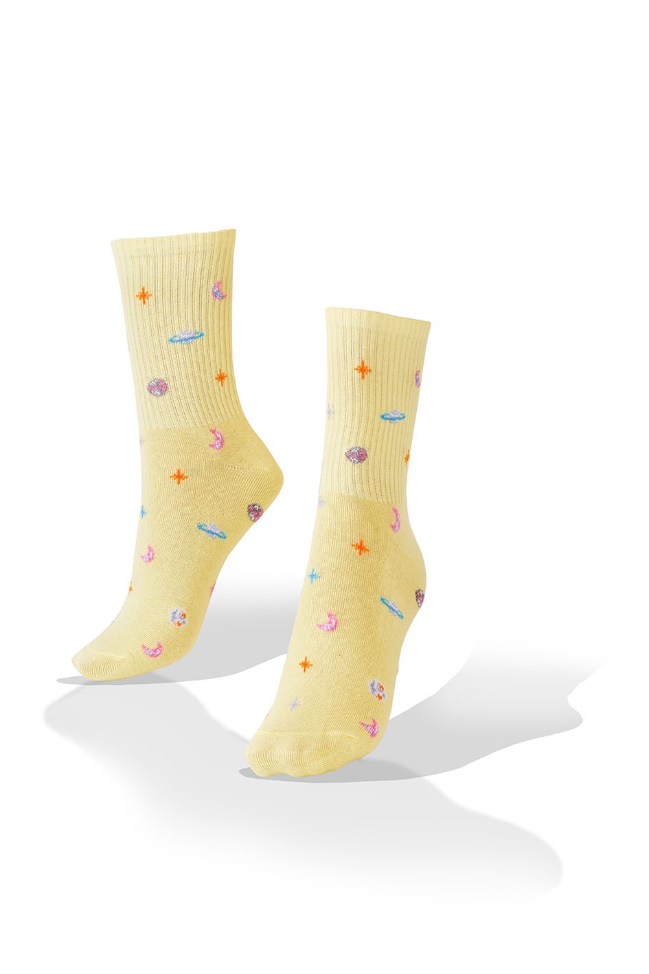 Medias con Planetas y Galaxias Fondo Amarillo Aves del Plata™