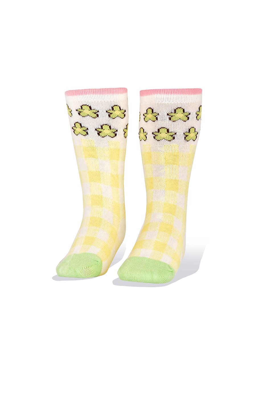 Medias Ninos Cuadrados Amarillo y Blanco y Florcitas