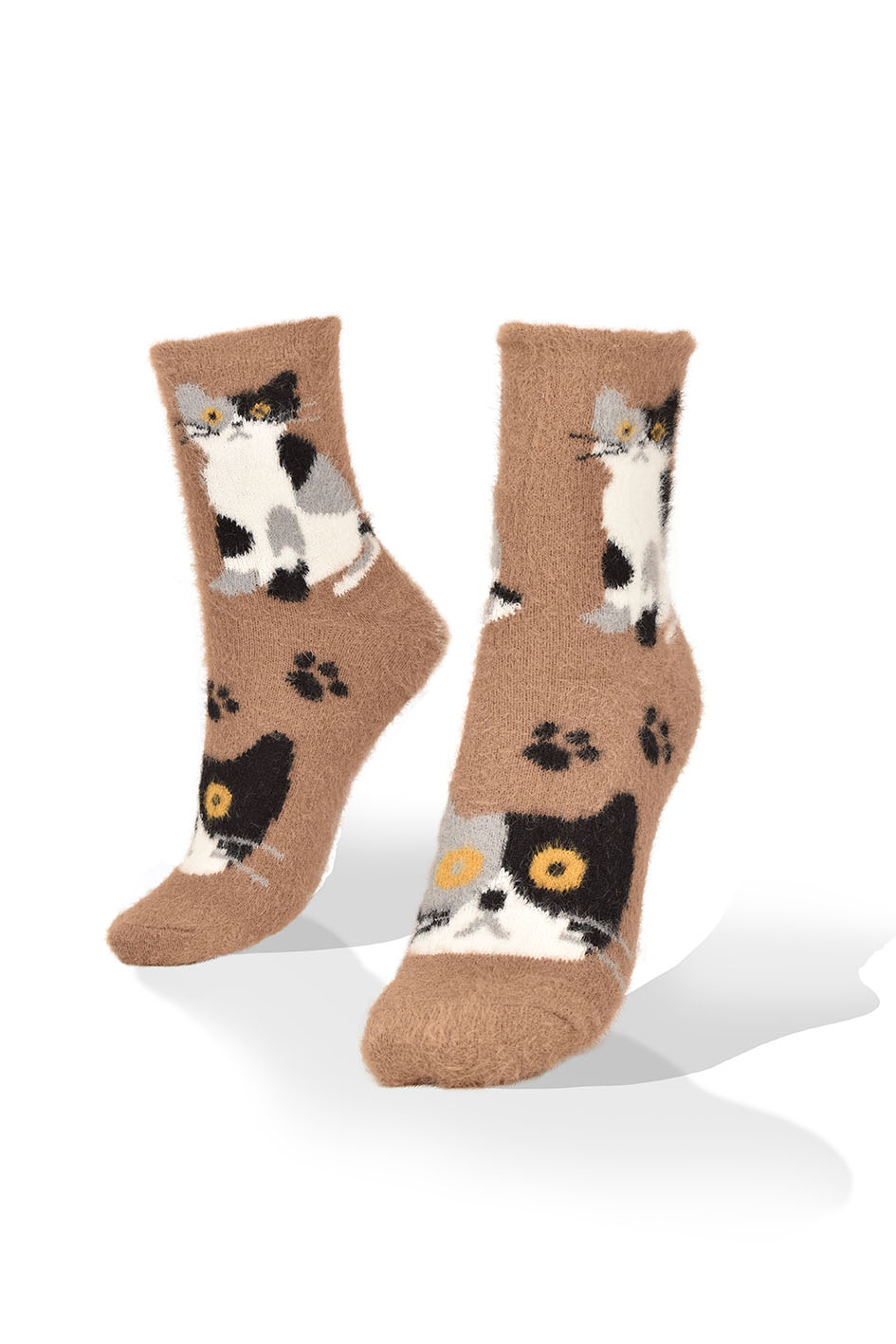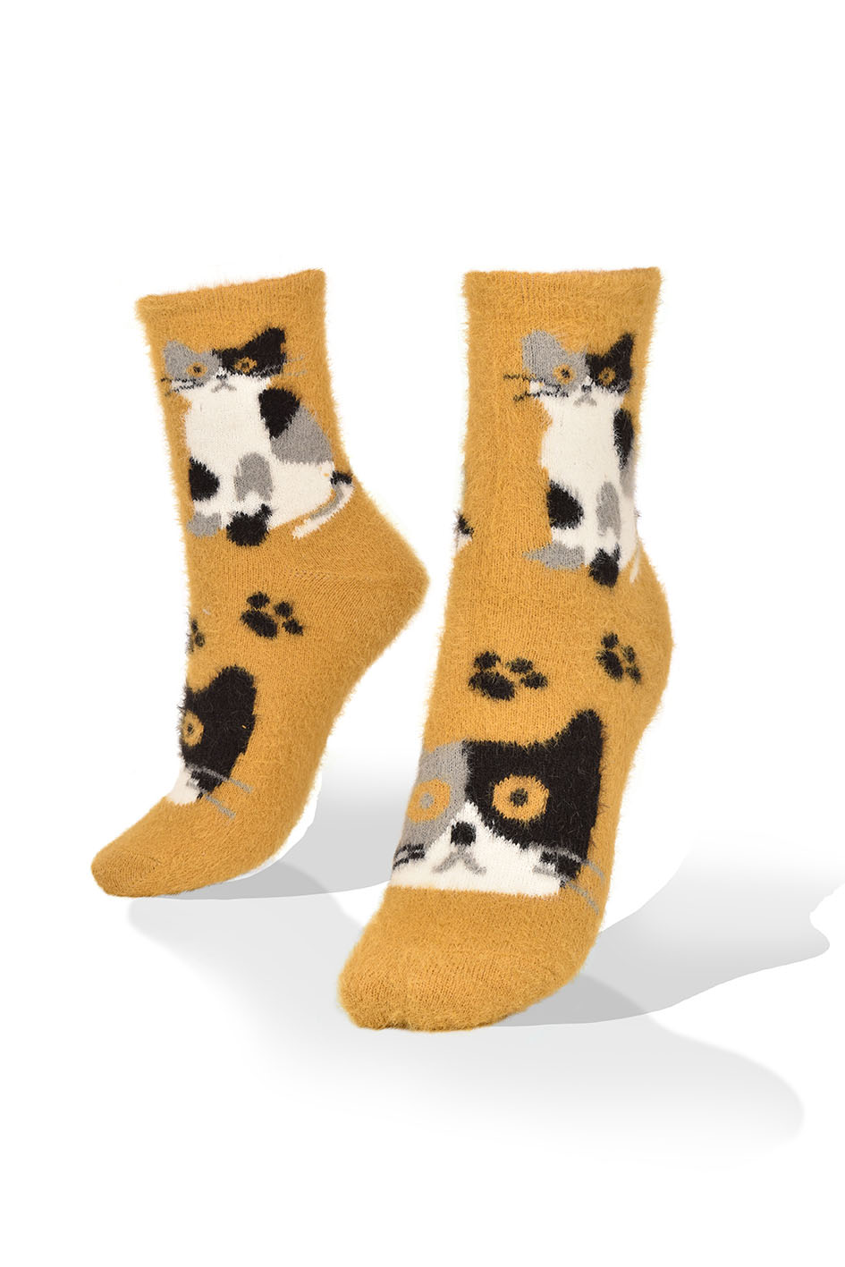Medias de Gatos Nocturnos en fondo mostaza