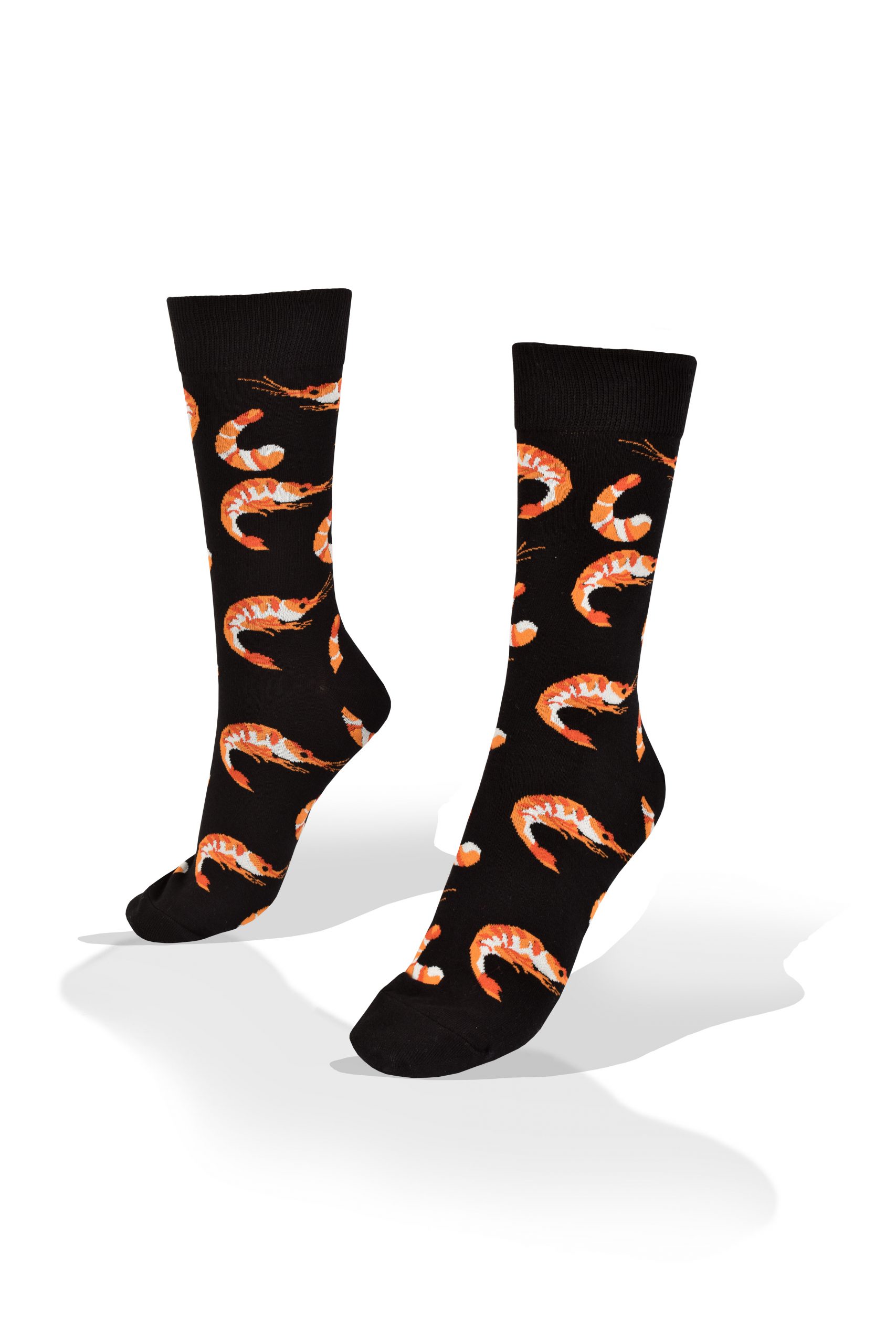 Medias Aves del Plata™ Camarones Naranja Fondo Negro.