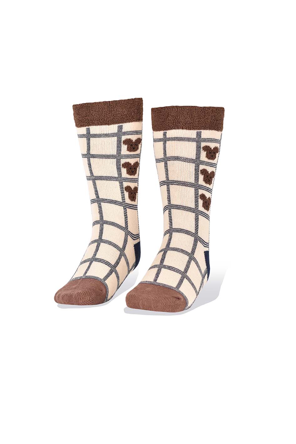 Medias de Niños Ositos Marrones en Cuadrados Fondo Beige